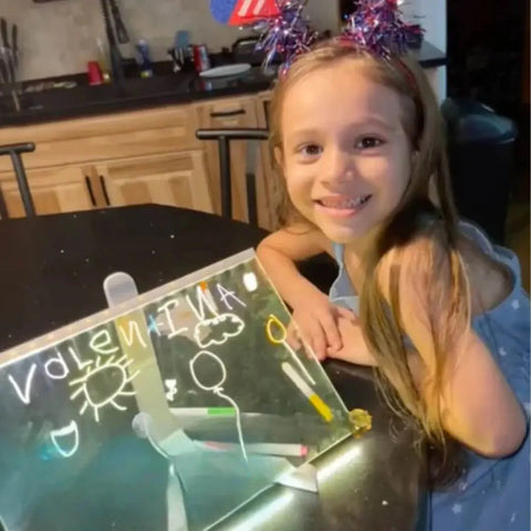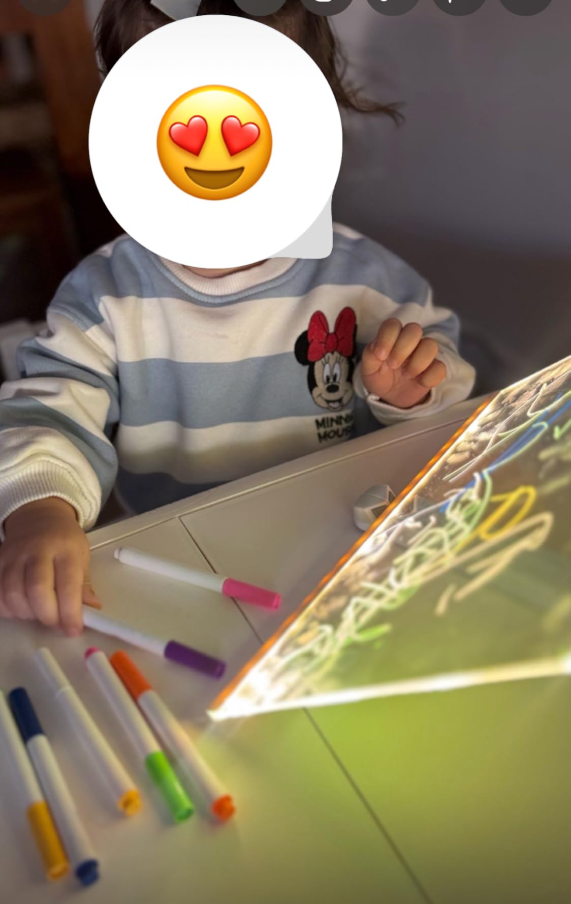 Chaque séance est différente : il peut écrire, dessiner, jouer, apprendre les lettres ou même inventer des histoires lumineuses.